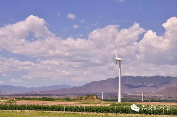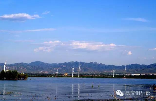 站在天漠的沙丘上,北侧是清亮如带的官厅水库,一座座风力发电机点缀其岸。
