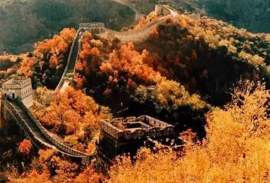 慕田峪长城蜿蜒盘桓,好似是围绕在北京的一条围巾,秋天“层林尽染”,让这条围巾变成金黄。