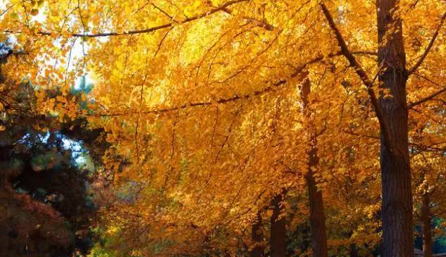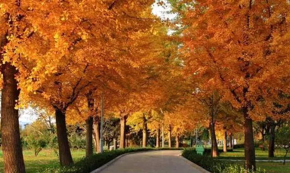 北京地区有着悠久的种植银杏的历史,其中尤其以钓鱼台银杏大道最美最有名,据说这里的银杏是北京最早种下的一批,秋冬交替时节,大大小小的银杏树满树金黄将这条街装点得素气大方,树下的芳草地被厚厚的金色的银杏树叶覆盖,踩起来“沙沙”作响。