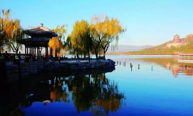 颐和园的昆明湖,是北京近郊最吸引人的一片水域。昆明湖的水面占公园的四分之三,总面积有3000亩之阔,比北京市内的五个北海还要大。昆明湖水域广阔,景色秀丽,乘船游于湖上,桥、岛、殿、阁,倒映水中,湖面上生气勃勃。呈现出一幅壮丽的画面。