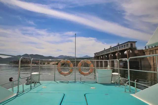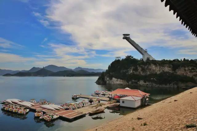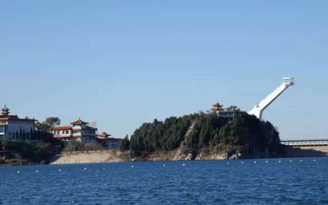 在金海湖的西面,还修建有一个长达1500米,宽8米,高20米的大坝,大坝的上面还修建有一个仿古长廊,不管是烈日当空,还是细雨朦胧,都给人们最好的角度来观看高峡平湖碧波荡漾的美景。