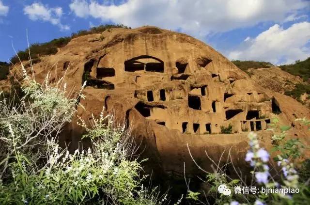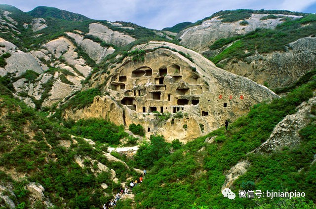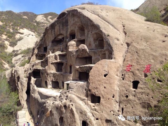 古崖居是古人在 山崖上开凿的石窟居室 这里现保存下来的石室有137个 尽悬挂于10万平方米的崖壁之上 上下分布,错落有致 俨然一座自然山寨