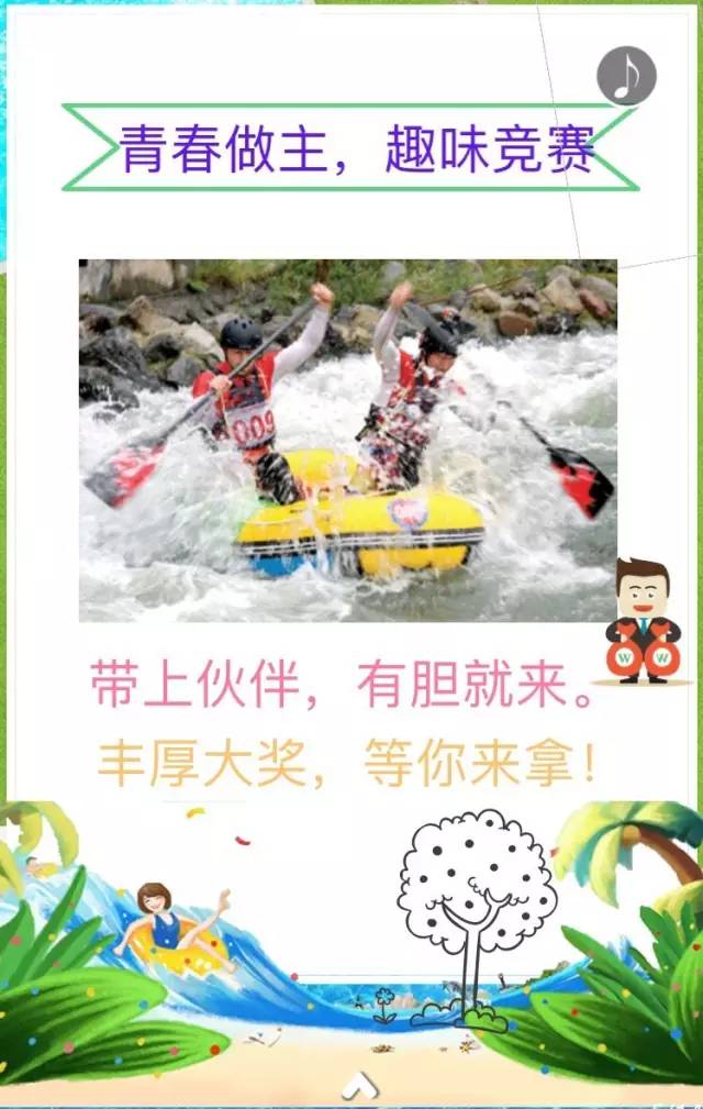 本届乐谷银滩“湿身节”以戏水、湿身为名,炮制今夏戏水大party;以高山峡谷漂流为媒,趣味比赛+互动+娱乐全民参与其中;融合旅游、文化艺术、娱乐、趣味体育、民俗、美食等元素,旨在为京津冀及周边地区的漂流、戏水、旅游爱好者带来一场精彩缤纷的“亲水湿身”盛宴!